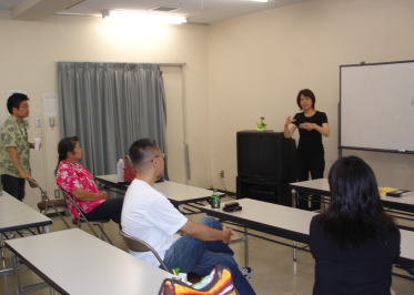 ろう者の塚原講師がテーマ「手話言語とは?」について指導した。