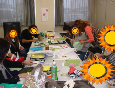 和気あいあい、飲食もしながら、手話でおしゃべりも交え、アットホームな感じで学べました。男性も参加していましたが、手先が器用で、他の女性メンバーよりスイ
