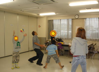 いつも遊びに来ているコーダのみなさんが登場、楽しく一緒にゲームをやりました。大人もお子さんの笑顔に生き生き、写真(個人情報保護のため加工はしています)のとおり、軽く体を動かして汗を流しました。